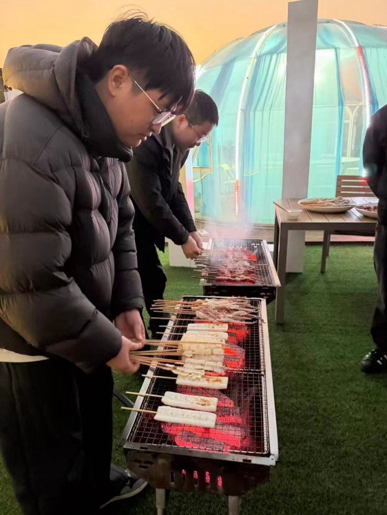Teambuilding-aktiviteten inkluderte også en selvbetjent grill for de ansatte. På arrangementet jobbet alle sammen, tilberedte råvarer og lagde mat, med bord fylt med ulike ferske råvarer og deilige retter. Ansatte satt sammen og nøt grillingen mens de pratet om jobb og liv, mens latter og glede fylte luften. Alle hevet glassene og pratet glad, og demonstrerte til fulle den harmoniske og varme arbeidsatmosfæren til Yongjun Textile-teamet.